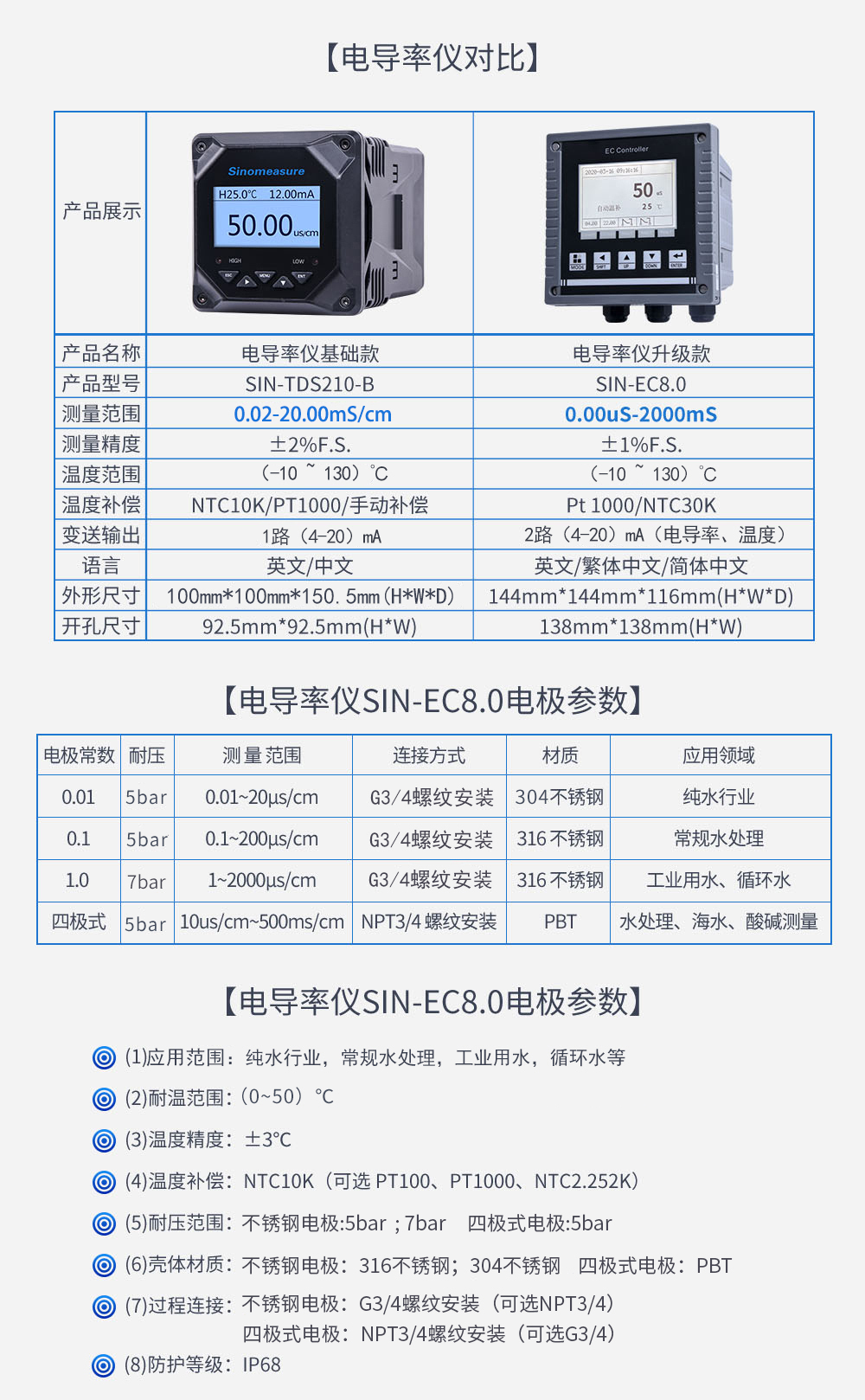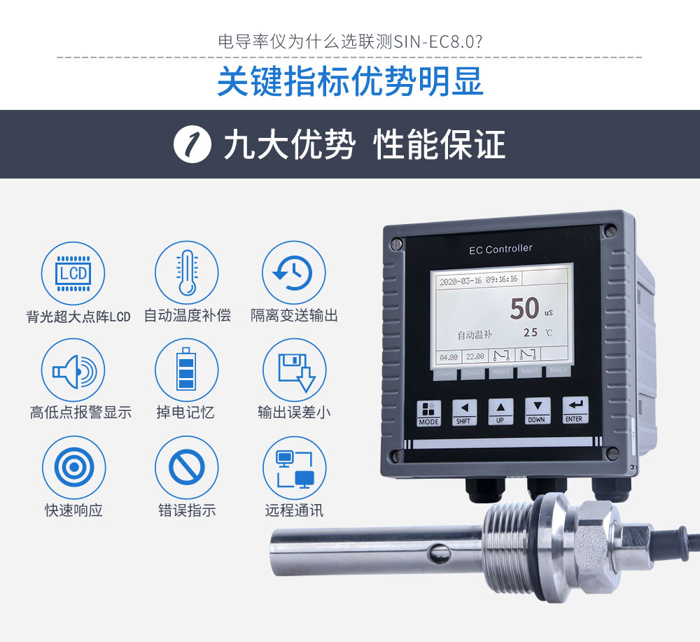 聯測_SIN-EC8.0在線電導率儀_RO過程_水處理_CIP清洗_海水淡化
